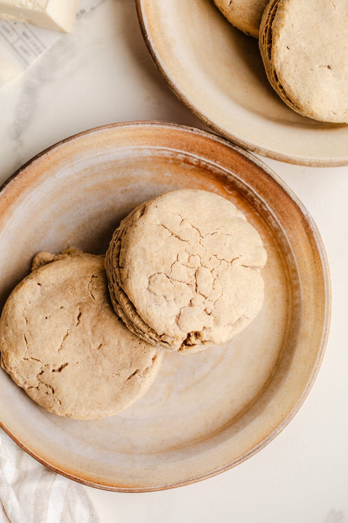 - Brush the biscuits with a little melted vegan butter once baked to keep them soft.